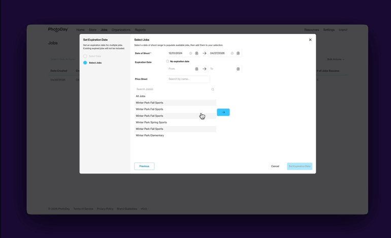 Previously, you had to update jobs one at a time by individually opening each one’s settings to change a price sheet or update the expiration date. Now you can filter your job list, select multiple jobs at once, and apply a change across all of them in a single action. If your studio manages a high volume of picture days, this will be especially life-changing!